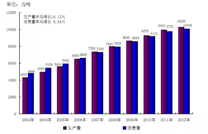 數據來源:《造紙信息》 3.拉鋸:國產紙企的崛起和進口紙的“敗退” 2000年以后,隨著中國紙企的崛起,中國原紙市場開始出現拉鋸情況,進口原紙市場份額開始出現波動,并逐步呈現下坡路態勢。 之所以說拉鋸,一個原因是國產紙產量的提升,一個是因為中國加入WTO后海量進出口貿易需求帶來的新動力,讓國產紙的產量沒有完全跟上包裝用紙需求,讓包裝紙市場并沒有完全向“此消彼長”發展。 即使以2001年中國正式加入WTO的時間開始計算,中國仍用了7年的時間才讓造紙產能勉強跟上消費需求。 根據中國造紙協會的紙及紙板生產和消費情況的數據顯示,從2001年至2011年,中國生產量年均增長11.99%,消費量年均增長10.23%。到2007年,中國紙及紙板的生產量正式超越消費量,達到7350萬噸,超出需求60萬噸。