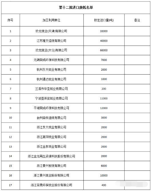 2020年第十二批限制類進口公示:廢紙核準總量71.085萬噸