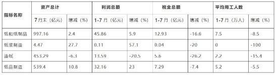 福建省 2020年1-7月份造紙及紙制品工業(yè)經(jīng)濟效益概況