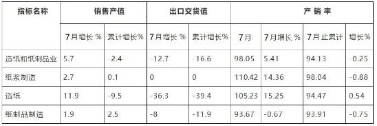 福建省造紙工業(yè)2020年1-7月份產(chǎn)銷及出口情況表