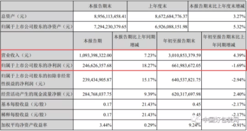 美盈森 今年第三季度,美盈森實現營收9.16億元,同比增長0.12%;實現歸屬于上市公司股東的凈利潤5882萬元,同比下降57.13%。 而今年前三季度,美盈森實現營收22.62億元,同比下降5%;實現歸屬于上市公司股東的凈利潤1.54億元,同比下降49.17%。