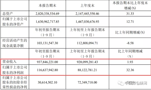 轉眼已至11月份,各大上市企業紛紛發布三季度財報。筆者統計了9家A股上市企業的三季度業績,發現多數企業已走出疫情陰霾,營收、利潤出現穩定增長。第四季度是包裝印刷行業的傳統旺季,相信其業績還會持續提升。 合興包裝 今年第三季度,合興包裝實現營收33.06億元,同比增長19.53%;實現歸屬于上市公司股東的凈利潤7959.02萬元,同比增長31.11%。 在整個前三季度,即1-9月份,合興包裝實現營收80.71億元,同比下滑2.18%;歸屬于上市公司股東的凈利潤2.18億元,同比增長11.99%。