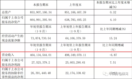 勁嘉股份 今年第三季度,勁嘉股份實現營收10.93億元,同比增長7.23%;實現歸屬于上市公司股東的凈利潤2.47億元,同比增長18.27%。 而今年前三季度,勁嘉股份實現營收30.01億元,同比增長4.39%;實現歸屬于上市公司股東的凈利潤6.6億元,同比下降1.69%。