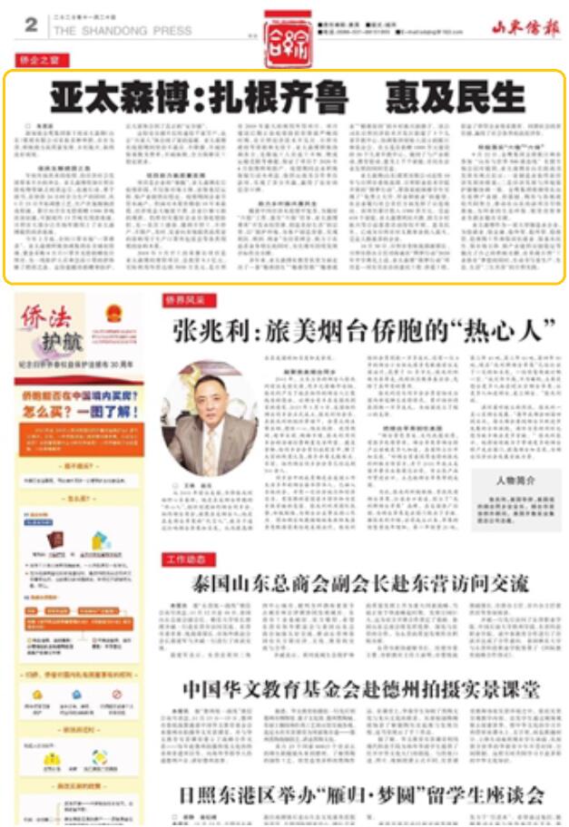2019年3月開(kāi)工的萊賽爾項(xiàng)目是亞太森博的增資項(xiàng)目,總投資9.3億元,實(shí)際利用外資達(dá)到3930萬(wàn)美元,是日照市2019年最大的利用外資項(xiàng)目。項(xiàng)目建設(shè)后期正是疫情防控形勢(shì)最嚴(yán)峻的時(shí)期,在日照經(jīng)濟(jì)技術(shù)開(kāi)發(fā)區(qū)、日照市政府等幫助和支持下,亞太森博積極協(xié)調(diào)各方,克服施工人員返工不暢、物流運(yùn)輸受阻等難題,保證了項(xiàng)目于2020年4月按期順利投產(chǎn)。疫情期間企業(yè)積極保銀行還本利息,保供應(yīng)商及合作單位款項(xiàng),實(shí)現(xiàn)了多方共贏,贏得了良好的信譽(yù)口碑。 助力鄉(xiāng)村振興惠民生 隨著中國(guó)經(jīng)濟(jì)從疫情中復(fù)蘇,為做好“六穩(wěn)”工作、落實(shí)“六保”任務(wù),亞太森博秉承“開(kāi)發(fā)永續(xù)資源、創(chuàng)造美好生活”的宗旨,以“保護(hù)環(huán)境,為客戶(hù)創(chuàng)造價(jià)值,實(shí)現(xiàn)利民、利國(guó)、利業(yè)”為經(jīng)營(yíng)理念,致力于在追求業(yè)務(wù)增長(zhǎng)的同時(shí),為實(shí)現(xiàn)可持續(xù)發(fā)展目標(biāo)作出貢獻(xiàn)。 多年來(lái),亞太森博在教育扶貧方面走出了一條“精準(zhǔn)招生”“精準(zhǔn)資助”“精準(zhǔn)就業(yè)”“精準(zhǔn)培訓(xùn)”的鄉(xiāng)村振興新路子。該公司在日照經(jīng)濟(jì)技術(shù)開(kāi)發(fā)區(qū)捐建了3個(gè)兒童早教中心;集團(tuán)創(chuàng)始人設(shè)立的陳江和基金會(huì),在五蓮縣捐贈(zèng)1000萬(wàn)元建設(shè)的20個(gè)兒童早教中心,做到了與產(chǎn)業(yè)聯(lián)動(dòng),教育促動(dòng),惠及上千個(gè)家庭,市民在企業(yè)發(fā)展的同時(shí)受益。 亞太森博(山東)漿紙有限公司連續(xù)10年與日照市委統(tǒng)戰(zhàn)部、日照職業(yè)技術(shù)學(xué)院開(kāi)展的“圓夢(mèng)行動(dòng)”,幫助家庭困難學(xué)生實(shí)現(xiàn)了“免費(fèi)上大學(xué)、畢業(yè)即就業(yè)”的愿望,在企業(yè)履行社會(huì)責(zé)任方面發(fā)揮了示范效應(yīng)。該項(xiàng)目累計(jì)投入1300多萬(wàn)元,受益418個(gè)家庭。亞太森博利民興教、助力鄉(xiāng)村振興等公益慈善活動(dòng)持續(xù)開(kāi)展,惠及民生,已成為日照市對(duì)文教事業(yè)投入最大、受益人數(shù)最多的企業(yè)。 10月30日,日照市委統(tǒng)戰(zhàn)部副部長(zhǎng)、日照市僑辦主任劉海誠(chéng)在“圓夢(mèng)行動(dòng)”2020年開(kāi)學(xué)典禮上說(shuō),亞太森博“圓夢(mèng)行動(dòng)”項(xiàng)目是一項(xiàng)實(shí)實(shí)在在的惠民工程、僑愛(ài)工程,彰顯了僑資企業(yè)情系教育、回饋社會(huì)的責(zé)任感,贏得了社會(huì)各界的高度評(píng)價(jià)。 積極落實(shí)“六穩(wěn)”“六保” 9月22日,金鷹集團(tuán)主席陳江和在參加“山東與世界500強(qiáng)連線”東盟專(zhuān)場(chǎng)會(huì)議時(shí)提到,亞太森博在山東的成功發(fā)展有兩點(diǎn)啟示:一是制造業(yè)始終是經(jīng)濟(jì)發(fā)展的根基;二是經(jīng)濟(jì)發(fā)展與環(huán)境保護(hù)能夠協(xié)調(diào)一致。金鷹集團(tuán)將繼續(xù)在山東延伸產(chǎn)業(yè)鏈、價(jià)值鏈,期待與各級(jí)政府共同努力,推動(dòng)在山東的新項(xiàng)目盡快落地,為國(guó)家的生態(tài)環(huán)保、脫貧攻堅(jiān)事業(yè)及就業(yè)做出貢獻(xiàn)。 亞太森博作為一家大型制造業(yè)企業(yè),為穩(wěn)就業(yè)、穩(wěn)金融、穩(wěn)外貿(mào)、穩(wěn)外資、穩(wěn)投資、穩(wěn)預(yù)期工作和保居民就業(yè)、保基本民生、保市場(chǎng)主體、保產(chǎn)業(yè)鏈供應(yīng)鏈穩(wěn)定等做出了自己的積極貢獻(xiàn),在承載日照“工業(yè)強(qiáng)市”夢(mèng)想的同時(shí),生動(dòng)書(shū)寫(xiě)著生產(chǎn)、生態(tài)、生活“三生共榮”的日照實(shí)踐。 (本文原載于2020年11月20日·山東僑報(bào))