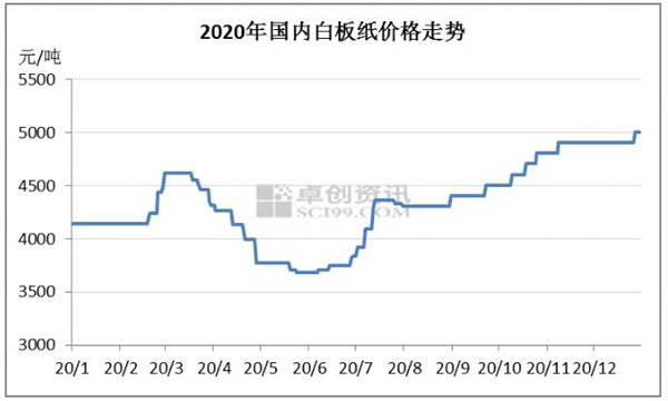 2.從需求角度看,白板紙需求領先廢書本。根據卓創資訊跟蹤的白板紙市場看,國內白板紙價格在經歷3、4月份的下跌,5、6月份筑底后,從6月下旬便開啟了上漲的行情。截止目前,國內白板紙價格較6月底上漲了33.6%。 白板紙6月底以來的上漲,其主要原因一方面是,白卡紙價格快速上漲的拉動,另一方面是公共衛生事件后,紙企白板開工率相對緩慢,以及市場對產能騰退的預期。這也是,廢書本價格與白板紙價格沒有出現同步的重要原因。 隨著白板紙價格持續走高,白板紙利潤大幅改善,紙企的開工率也在持續攀升,很多紙企也有了轉產白板紙的計劃,這就提升了廢書本紙的需求。 但由于廢書本行情長期低迷,市場回收積極性不高,加之外廢進口禁止等因素支撐,市場對白廢供應緊張預期加強,而紙企在白板紙利潤高企的驅動下,加大了廢書本的紙備貨。此時,供需出現了階段性的失衡,也就出現了廢書本紙價格快速上漲的局面。 而對于后期的市場,我們還是持相對樂觀的態度。一方面國內書本整體供應還是偏緊,而在外廢禁止進口后,市場供應缺口或將繼續放大;另一方面,在“紙代塑”的預期下,國內紙漿及白卡紙價格也在持續攀升,也給了白板紙價格上漲提供了支撐,或進一步提升白板紙的生產積極性。雖然浙江地區產能騰退對廢書本需求產生一定的影響,但從目前的供需格局看,該事件的影響已經不大。預計2021年國內廢書本價格還有一定的上漲空間。
