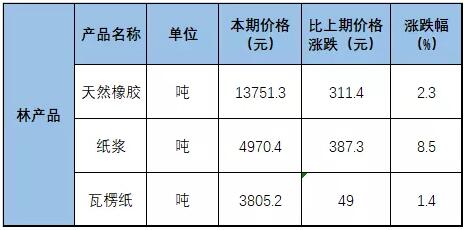 其中林產品領域,1月上旬與12月下旬相比,紙漿價格上漲387.3元,漲幅8.5%;瓦楞紙價格上漲49元,漲幅1.4%。