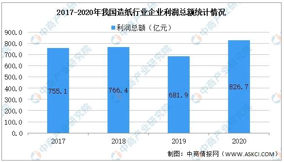 數(shù)據(jù)來源:中商產(chǎn)業(yè)研究院大數(shù)據(jù)庫 三、中國造紙行業(yè)利潤總額上升 2020年中國造紙企業(yè)利潤較2019年有所上升,造紙企業(yè)利潤總額由2019年681.9億元降至2020年的826.7億元,漲幅21.2%。