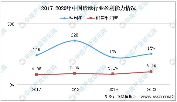 數(shù)據(jù)來源:中商產(chǎn)業(yè)研究院大數(shù)據(jù)庫 四、中國造紙行業(yè)盈利能力上升 近年來,我國造紙行業(yè)盈利能力呈現(xiàn)提高的趨勢,2020年毛利率為15%,銷售利潤率由2017年的4.9%提高至2020年的6.4%。