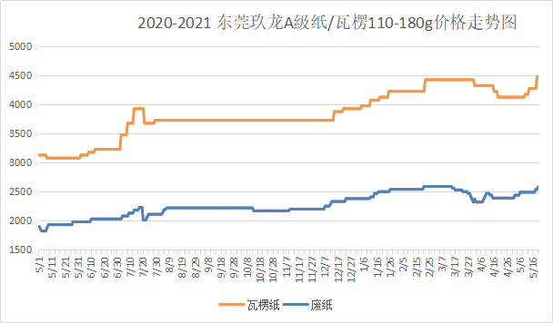 5月20日,國廢市場(chǎng)漲勢(shì)依舊迅猛,玖龍五大基地統(tǒng)一上調(diào),理文、山鷹各基地緊隨其后,華中、華南、華東各中小紙企集中跟漲,幅度在20-100元/噸。 玖龍系東莞基地黃板紙A級(jí)報(bào)價(jià)2590元/噸,太倉黃板紙A級(jí)報(bào)價(jià)2420元/噸;山鷹系漳州基地黃板紙A級(jí)報(bào)價(jià)2510元/噸;理文系重慶基地黃板紙一級(jí)報(bào)價(jià)2250元/噸。 近幾日玖龍基地持續(xù)拉漲廢紙價(jià)格,漲勢(shì)隨即席卷全國,各紙企積極跟漲。當(dāng)前市場(chǎng)雖統(tǒng)一漲勢(shì),但近期廢紙到貨并未明顯增多,打包站對(duì)后市看漲心態(tài)依舊較濃,紛紛轉(zhuǎn)為觀望,紙企到貨未達(dá)預(yù)期。 原紙走勢(shì)解讀