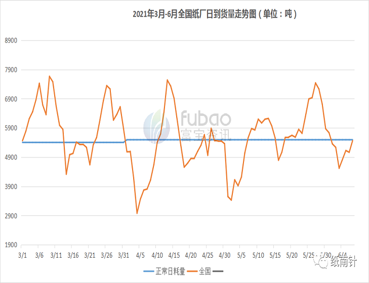 8日富寶統計全國82家樣本紙企昨日廢紙到貨16.38萬噸,較前一日增加1.19萬噸。從紙廠日到貨量走勢圖可以看出,從6月初開始紙廠總的日到貨量低于日所需量,紙企上調價格增加到貨,打包站盼漲情緒升溫,國廢黃板紙市場穩中上調。 原紙走勢解讀