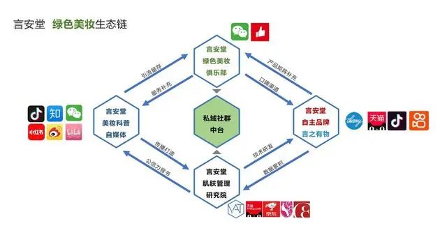 注:上圖為言安堂體系 依托C端用戶,言安堂建立有10w+的用戶健康檔案數(shù)據(jù)、300+社群和6w+私域流量。通過社群運營私域流量,在輸出專業(yè)知識和課程的同時,言安堂和用戶達成了品牌共創(chuàng)的合作模式,部分用戶可以參與產(chǎn)品開發(fā)與測評、管理社群和品牌宣傳并獲得銷售分成。 2019年,言安堂建立自主品牌“言之有物”,通過前期自有用戶檔案數(shù)據(jù)和更廣人群的調(diào)研,以及研發(fā)工程師加入社群,在研發(fā)中快速獲得用戶反饋的研發(fā)模式,實現(xiàn)精準研發(fā)和產(chǎn)品共創(chuàng)。目前,言之有物的SKU達到約20個,以功能性精華為主,定價在200元左右。 在言安堂肌膚管理研究院下,目前打造有50套知識體系的圖譜和200+節(jié)的培訓課程體系。為言安堂自媒體輸出提供支持的同時,也面向行業(yè)、MCN機構(gòu)、美妝博主、渠道店鋪等開放,提供培訓服務。此外,言安堂的用戶數(shù)據(jù)體系也會向合作品牌開放,用于共同開發(fā)新產(chǎn)品。目前言安堂在全網(wǎng)積累有200w+粉絲、20w+會員。 阿普塔和言安堂雙方就環(huán)保趨勢方面達成一致。一方面,在自媒體端,言安堂將加大環(huán)保包裝趨勢的輸出;同時,言安堂也將在電商端開啟空瓶回收,和用戶建立更深連接;另一方面,言安堂自主品牌言之有物也將嘗試可循環(huán)/可降解包裝材料。 創(chuàng)始人趙國慶表示,國內(nèi)護膚品牌溢價嚴重,大部分費用被用于品宣,產(chǎn)品真正價值和實際定價不成正比,而推廣費用的部分實際上可以用于環(huán)保。言安堂的優(yōu)勢在于通過私域已經(jīng)積累了大批用戶數(shù)據(jù),未來也將拓展公域流量,形成公私兩域的互動模式,提升自身平臺能力。言安堂也將持續(xù)關(guān)注成分護膚向快樂護膚轉(zhuǎn)變的趨勢,以功能成分為基礎點,從細分場景和人群出發(fā),提供定制化服務。 團隊方面,創(chuàng)始人趙國慶畢業(yè)于復旦大學/新加坡國立大學MBA,曾任聯(lián)合利華研發(fā)工程師,擁有多年護膚研發(fā)、供應鏈經(jīng)驗。