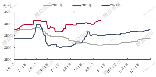 1-8月份瓦楞紙價格呈現(xiàn)“V”字型走勢。1-8月份(截至8月19日)瓦楞紙全國均價為3952元/噸,環(huán)比去年同期的3351元/噸上漲601元/噸,漲幅為17.94%。5月下旬開始至今,瓦楞紙市場主流價維持上揚態(tài)勢,8月初漲幅進(jìn)一步擴(kuò)大。主因下游加工企業(yè)原紙庫存處于中低位水平,加之中秋臨近紙價上漲,受“買漲不買跌”心理影響,下游包裝企業(yè)備庫積極性提升,市場交投氣氛有所好轉(zhuǎn)。