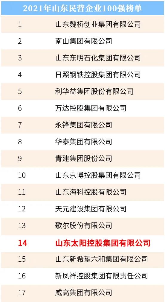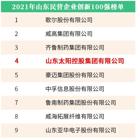 8月27日,山東省工商聯(lián)十三屆八次常委會(huì)議暨2021年山東民營(yíng)企業(yè)100強(qiáng)發(fā)布會(huì)在濟(jì)南市山東大廈齊魯廳召開(kāi)。山東太陽(yáng)控股集團(tuán)有限公司(以下簡(jiǎn)稱:太陽(yáng)控股)蟬聯(lián)山東民營(yíng)企業(yè)100強(qiáng),位列第14位。同時(shí),太陽(yáng)控股入選山東民營(yíng)企業(yè)創(chuàng)新100強(qiáng),位列第4位,彰顯了企業(yè)在科研創(chuàng)新上的強(qiáng)大實(shí)力。