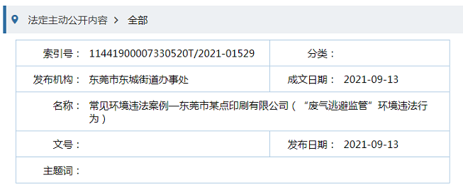 2020年4月28日,東城生態(tài)環(huán)境分局執(zhí)法人員現(xiàn)場(chǎng)檢查及調(diào)查發(fā)現(xiàn),該單位正在生產(chǎn),其中1臺(tái)輪轉(zhuǎn)商標(biāo)印刷機(jī)、2臺(tái)四色印刷機(jī)正在使用,已配套廢氣治理設(shè)施,但配套的廢氣治理設(shè)施沒(méi)有運(yùn)轉(zhuǎn),產(chǎn)生的印刷廢氣未經(jīng)處理直接排放。