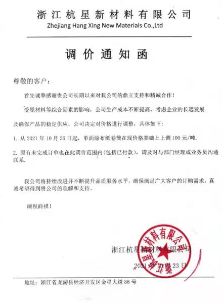 隨著原材料成本、用電成本、能源成本急速上漲,二級紙板廠也頂不住了!從10月20日開始陸續傳出漲價函。持續不斷的漲價,如果從9月開始算,已經整整6輪。
