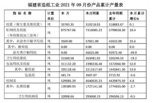 福建省造紙工業(yè)2021年09月份產(chǎn)品累計(jì)產(chǎn)量表