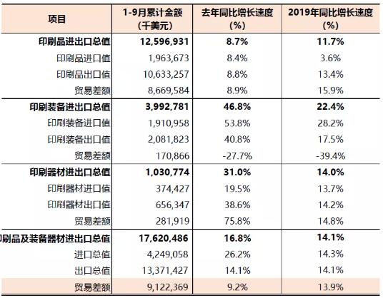 本期觀察 總結: 國內印刷品、印刷裝備、印刷器材三大類商品進出口總值均保持增長。其進出口規模不僅恢復和超過去年同期水平,而且與2019年同期相比,也都有超過兩位數的增長; 印刷裝備的進口和出口的增長幅度最大。與去年同期相比,國內印刷設備進口增長53.8%、出口增長40.8%;與2019年同期相比,其進口和出口的增長速度分別為28.2%、17.5%; 印刷器材進口和出口穩定增長。與去年同期相比,國內印刷器材進口增長19.5%、出口增長38.6%;與2019年同期相比,其進口增長13.7%、出口增長14.2%; 印刷品進口和出口增長趨緩。與去年同期相比,國內印刷品進口增長8.4%、出口增長8.8%;與2019年同期相比,其進口增長3.6%、出口增長13.4%; 與去年同期相比,2021年1-9月國內印刷品、印刷裝備、印刷器材進口、出口增長較快的前五位商品類別如下: 進口:其他出版物印刷品(+264.9%)、凸版印刷機(+237.5%)、CTP膠印版材(+176.3%)、其他紙質包裝容器(+101.0%)、印刷輔機和零件(+77.8%); 出口:票證類印刷品(+153.5%)、印刷輔機和零件(+78.3%)、凹印機(+59.5%)、絲印機(+59.2%)、水性噴墨墨水(+48.6%)。 同期,國內印刷品、印刷裝備、印刷器材進出口相對萎縮的商品類別如下: 進口:期刊雜志類印刷品(-69.7%)、柔版印刷機(-42.1%)、兒童圖畫書類印刷品(-2.7%); 出口:其他商業類印刷品(-31.6%)、辦公類印刷品(-5.0%)。 與2019年同期相比,2021年1-9月國內印刷品、印刷裝備、印刷器材進口、出口增長較快的前五位商品類別如下: 進口:凸版印刷機(+235.9%)、CTP膠印版材(+193.9%)、其他出版物印刷品(+148.6%)、印刷輔機和零件(+68.0%)、紙袋(+49.0%)其他紙質包裝容器(+42.8%); 出口:水性噴墨墨水(+56.3%)、瓦楞紙盒(箱)(+54.8%)、非瓦楞紙折疊紙盒(+50.3%)、印刷輔機和零件(+46.5%)、包裝印后設備(+45.9%)。 同期,國內印刷品、印刷裝備、印刷器材進出口相對萎縮的商品類別如下: 進口:期刊雜志類印刷品(-59.7%)、絲印機(-41.0%)、數字印刷機(-20.1%)、PS膠印版材(-19.6%); 出口:期刊雜志類印刷品(-25.9%)、計算機直接制版機(-24.6%)、其他出版物印刷品(-23.8%)、辦公類印刷品(-15.2%)、PS膠印版材(-13.4%)。 時間已經進入2021年的第四季度。受新冠肺炎疫情的持續沖擊,9月以來,供應短缺導致全球天然氣、煤炭和原油價格飛漲,它不僅引發國內不少地區供電緊張,這一能源危機也在全球近30個國家和地區蔓延。2021年最后一個季度國內印刷產業相關商品進出口狀況不容樂觀。