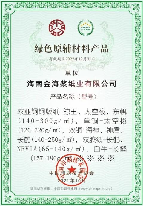 APP旗下海南金海漿紙業有限公司、金東紙業(江蘇)股份有限公司、金華盛紙業(蘇州工業園區)有限公司共同入選《綠色原輔材料產品目錄》。