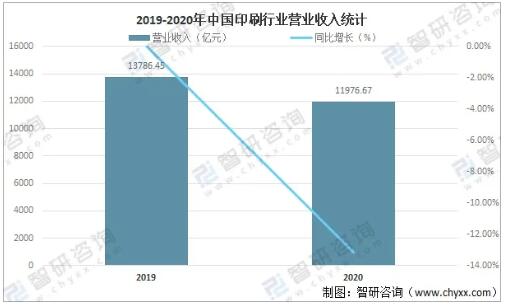 一、經(jīng)營現(xiàn)狀 印刷(Printing,GraphicArts,也用使用GraphicCommunications即圖形傳播的)是將文字、圖畫、照片、防偽等原稿經(jīng)制版、施墨、加壓等工序,使油墨轉(zhuǎn)移到紙張、紡織品、塑料品、皮革、PVC、PC等材料表面上,批量復(fù)制原稿內(nèi)容的技術(shù)。印刷是把經(jīng)審核批準(zhǔn)的印刷版,通過印刷機(jī)械及專用油墨轉(zhuǎn)印到承印物的過程。 印刷術(shù)起源于中國,是經(jīng)過很長時(shí)間,積累了許多人的經(jīng)驗(yàn)而成的,是人類智慧的結(jié)晶,印刷業(yè)作為我國的傳統(tǒng)行業(yè)近年來發(fā)展迅速,2020年受新冠肺炎疫情影響,中國印刷行業(yè)營業(yè)收入有所下滑,2020年中國印刷行業(yè)營業(yè)收入為11976.67億元,較2019年減少了1809.78億元,同比減少13.13%。 【19-2020年中國印刷行業(yè)營業(yè)收入統(tǒng)計(jì)】