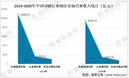 資料來源:國家新聞出版署、智研咨詢整理 從細(xì)分市場(chǎng)來看,2020年中國包裝裝潢印刷業(yè)營業(yè)收入為9503.31億元,較2019年減少了1356.99億元;出版物印刷業(yè)營業(yè)收入為1557.43億元,較2019年減少了157.74億元。 【2019-2020年中國印刷行業(yè)細(xì)分市場(chǎng)營業(yè)收入統(tǒng)計(jì)(億元)】