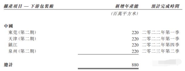 另外,集團(tuán)正在有序地發(fā)展下游包裝業(yè)務(wù),開拓新客源,為終端客戶提供一站式高品質(zhì)產(chǎn)品及服務(wù),借此差異化搶占市場份額。截至2021年12月31日止,集團(tuán)下游總設(shè)計(jì)年產(chǎn)能約20億平方米(部分瓦楞紙板用以內(nèi)部生產(chǎn)瓦楞紙箱),預(yù)計(jì)于2022及2023年將分別增加6.6及2.2億平方米年產(chǎn)能。