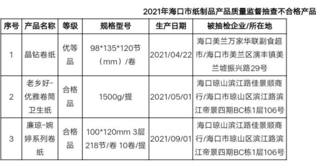 3月7日,國際旅游島商報記者了解到,海口美蘭萬家華聯(lián)副食超市、海口瓊山濱江路佳景順商行銷售3批次不合格紙制品。