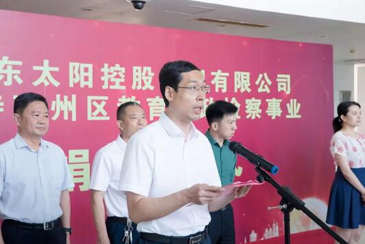 王營指出,山東太陽控股集團有限公司作為兗州區的龍頭企業、功勛企業,始終勇立改革開放的潮頭,開拓創新、銳意進取,為兗州經濟社會發展作出了卓越貢獻。特別是企業在做大做強主業的同時,積極履行社會責任,主動投身公益慈善事業,近年來在教育、養老、扶貧、疫情防控等多個領域已累計捐款超過2億元,今天再次慷慨解囊,捐款550萬元,用于救助家庭困難師生、開展困難老年人家庭適老化改造、司法救助等公益活動,充分彰顯了企業勇于擔當的時代精神和奉獻社會的大愛情懷。