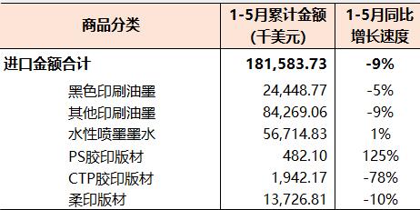 2022年1-5月國內印刷器材進出口貿易順差3.15億美元(同比增長104%)。 本期觀察 2022年1-5月國內印刷產業相關商品進出口同比增長10%,與上期(1-4月)相比,提升了2個百分點。而拉動其提升的主要動力來自印刷品、印刷裝備、印刷器材三大類商品的出口增長。 本期,國內印刷產業相關商品進出口貿易特點如下: 三大類商品進口速度相對萎縮的態勢未見根本改觀:1-5月份,國內印刷產業相關商品進口同比下降12%。其中,印刷品進口同比下降1%(較上期上升2個百分點)、印刷裝備同比下降23%(較上期降低2個百分點)、印刷器材同比下降9%(較上期提高2個百分點)。 印刷品、印刷器材出口繼續大幅增長、印刷裝備出口增長速度由負轉正:1-5月份,國內印刷品和印刷器材的出口同比增長速度分布為19%和41%。同時,國內印刷裝備出口由上期的負增長(-1%)轉變為正增長(2%)。 亞洲、歐洲和北美的市場穩固,拉美和非洲市場增長顯著:1-5月份,國內印刷品、印刷裝備、印刷器材進出口在亞洲、歐洲和北美洲三大區域市場的分布相對穩定(亞洲43%、歐洲22%、北美洲24%)。與去年同期相比三個市場相關進出口增長情況為,亞洲2%、歐洲10%、北美洲增長19%。同時,在拉丁美洲和非洲市場,國內印刷產業相關商品進出口表現亮眼,其增長速度分別達到35%和16%。 與2021年同期相比,2022年1-5月國內印刷品、印刷裝備、印刷器材進口和出口增長較快的前五個商品商品類別如下: 進口:期刊及雜志類印刷品(+247%)、PS膠印版材(+125%)、柔版印刷機(+42%)、辦公類印刷品(+8%)、水性噴墨墨水(+1%); 出口:膠印機(+59%)、CTP膠印版材(+54%)、PS膠印版材(+49%)、柔版印刷機(+41%)、紙袋(+34%)。 同期,國內印刷品、印刷裝備、印刷器材進口和出口相對萎縮的前五個商品商品類別如下: 進口:凸印機(-98%)、兒童圖畫書類印刷品(-82%)、CTP膠印版材(-78%)、其他出版物印刷品(-71%)、包裝印后設備(-55%); 出口:其他出版物印刷品(-62%)、票證類印刷品(-58%)、期刊及雜志類印刷品(-39%)、柔印版材(-14%)、書刊裝訂設備(-13%)。