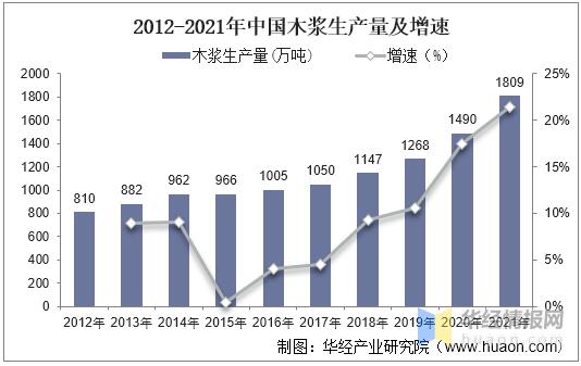 木漿是制作生活用紙的主要原材料,我國是木漿生產大國,產量持續增長。據中國造紙協會數據,2021年全國木漿生產總量達1809萬噸,同比上升21.41%。