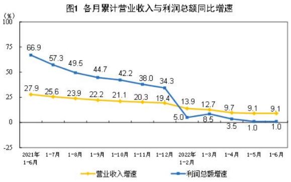 7月27日,國家統計局發布了2022年1-6月份全國規模以上工業企業利潤。數據顯示,全國規模以上工業企業在今年上半年共實現利潤總額42702.2億元,同比增長1.0%。