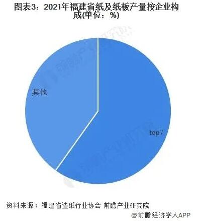 從企業發展來看,福建省造紙業企業集中度較高。2021年,福建省造紙產量10萬噸以上企業有10家,合計產量為643.02萬噸,占2021年全省造紙產量的64.64%。產量20萬噸以上的企業有7家:聯盛紙業(龍海)有限公司、玖龍紙業(泉州)有限公司、山鷹華南紙業有限公司、恒安(中國)紙業有限公司、福建省青山紙業股份有限公司、漳州景盛紙制品有限公司、漳州盈晟紙業有限公司,這7家企業合計產量595.75萬噸,占全省造紙產量的59.88%。