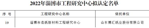 經(jīng)過山東博匯紙業(yè)技術(shù)部研發(fā)處相關(guān)資料的準(zhǔn)備及申報(bào)、桓臺(tái)縣發(fā)改委審核推薦、第三方專家評(píng)審等程序,山東博匯紙業(yè)股份有限公司于2022年9月成功認(rèn)定“淄博市造紙新材料工程研究中心”。