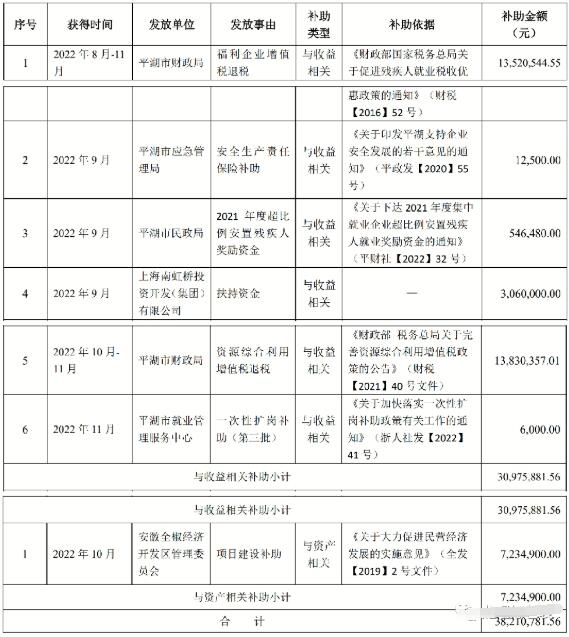 12月1日,浙江榮晟環(huán)保紙業(yè)股份有限公司(下文簡(jiǎn)稱:榮晟環(huán)保)發(fā)布公告稱,自2022年8月24日至11月29日,公司及子公司累計(jì)收到政府補(bǔ)助38,210,781.56元(未經(jīng)審計(jì))。