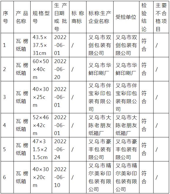 近日,浙江省義烏市市場監管局發布2022年義烏市瓦楞紙箱產品質量監督抽查結果。