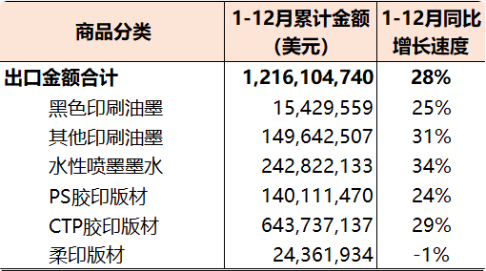 2022年1-12月國內印刷器材出口12.16億美元(參見表7),與去年同期相比增長28%。其中,黑色印刷油墨出口2853.96噸、0.15億美元(同比增長25%);其他印刷油墨出口2.27萬噸、1.50億美元(同比增長31%);水性噴墨墨水出口2.77萬噸、2.43億美元(同比增長34%);PS膠印版材出口4237.34萬平方米、1.40億美元(同比增長24%);CTP膠印版材出口1.71億平方米、6.44億美元(同比增長29%);柔印版材出口53.08萬平方米、0.24億美元(同比下降1%)。 2022年1-12月國內印刷器材進出口貿易順差7.80億美元(同比增長77%)。 本期觀察 1-12月份國內印刷品、印刷裝備、印刷器材三大類商品進出口同比增長4%,較1-11月同比增速(5%)下降1個百分點,也是從8月份開始月度進出口同比增長幅度連續第5個月收窄。 從進出口商品市場看,2022年1-12月國內印刷品、印刷裝備和印刷器材進口和出口的變化特點如下: 亞洲和歐洲市場進口大幅下降、其他市場進口穩定增長:1-12月份,國內印刷產業三大類商品從亞洲進口22.08億美元(同比下降23%)、歐洲進口16.68億美元(同比下降13%)。同期,從北美洲進口9.23億美元(同比增長3%)、拉丁美洲進口0.56億美元(同比增長580%)、大洋洲進口0.23億美元(同比增長15%)。 對全球各區域市場出口同步增長,亞洲市場是支撐出口增長的主力:1-12月份,國內印刷產業三大類商品對全球各區域市場出口分布為,亞洲87.09億美元(同比增長14%)、北美洲47.35億美元(同比增長1%)、歐洲40.09億美元(同比增長6%)、大洋洲9.70億美元(同比增長15%)、拉丁美洲9.51億美元(同比增長29%)、非洲8.28億美元(同比增長22%)。 從進出口商品類別看,2022年1-12月國內印刷品、印刷裝備和印刷器材進出口的變化特點如下: 三大類商品進口負增長態勢延續 ,但下降幅度變化各異:1-12月份,國內印刷品進口同比下降7%、印刷裝備進口同比下降23%、印刷器材同比下降14%。與上期對比,印刷品同比下降幅度擴大3個百分點,印刷裝備同比下降幅度縮小2個百分點、印刷器材同比下降幅度擴大1個百分點。 印刷品、刷器材出口增長幅度趨緩、印刷裝備出口增長平穩:1-12月份,國內印刷品、印刷裝備和印刷器材的出口同比增長速度分別為9%、8%和28%。與上期相比,印刷品出口增速回落1個百分點,印刷裝備出口增速穩定、印刷器材出口增速回落7個百分點。 從進出口商品品種看,2022年1-12月國內印刷品、印刷裝備、印刷器材三大類商品進口和出口增長較快的前五個品種如下: 進口商品:凹版印刷機(+64%)、柔版印刷機(+38%)、票證類印刷品(+12%); 出口商品:膠印機(+37%)、柔版印刷機(+37%)、水性噴墨墨水(+34%)、其他印刷油墨(+31%)、CTP膠印版材(+29%)。 同期,上述三大類商品進口和出口相對萎縮的前五個品種如下: 進口商品:凸印機(-76%)、兒童圖畫書類印刷品(-71%)、CTP膠印版材(-68%)、其他出版物印刷品(-68%)、書刊裝訂設備(-52%); 出口商品:其他出版物印刷品(-78%)、票證類印刷品(-46%)、兒童圖畫書類印刷品(-5%)、期刊及雜志類印刷品(-4%)、絲網印刷機(-2%)。