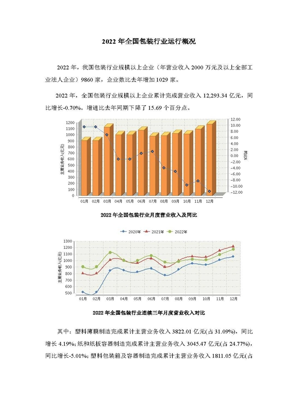 日前,中國包裝聯合會公布了《2022年全國包裝行業運行概況》。