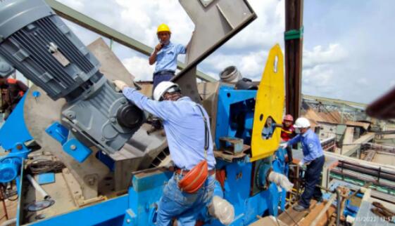 服務友廠 砥礪篤行 汶瑞機械首創雙輥洗漿機改造五輥成功 印尼JAMBI漿廠原使用在D0漂白后漿料濃縮工段的1532雙輥擠漿機,因漿廠工藝改進、產能提升,設備性能已不能滿足工藝需求。2022年,在最新的五輥洗漿機設計、制造、運行中積累了豐富經驗的汶瑞機械承擔起了印尼JAMBI漿廠改造盤活設備的重任。