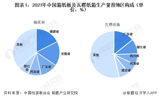 紙制品包裝區(qū)域總體發(fā)展分析 我國東部沿海地區(qū)在紙制品包裝工業(yè)領(lǐng)域也處于絕對領(lǐng)先地位。據(jù)中國包裝聯(lián)合會統(tǒng)計(jì)數(shù)據(jù)顯示,2021年,我國主要紙制品包裝產(chǎn)品產(chǎn)量前五地區(qū)大部分位于東部沿海,其中箱紙板產(chǎn)量排在前五位的地區(qū)依次是福建省、安徽省、廣東省、河北省以及浙江省,五省箱紙板合計(jì)產(chǎn)量占全國產(chǎn)量的63.03%;瓦楞紙箱產(chǎn)量排在前五位的地區(qū)依次是廣東省、浙江省、四川省、河南省以及湖北省,五省瓦楞紙箱產(chǎn)量合計(jì)占全國產(chǎn)量的46.20%。