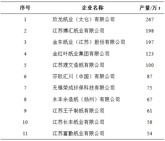 2022年,面對嚴峻復雜的國際環境和多重超預期因素沖擊,江蘇省造紙企業生產經營和發展面臨巨大挑戰,但隨著新增產能的不斷釋放,江蘇省造紙行業整體產能與上年基本持平。 1 江蘇省造紙工業2022年生產運營情況 1.1 主要生產經濟指標完成情況 1.1.1 機制紙及紙板總產量 據江蘇省造紙行業協會調查統計,2022年江蘇省造紙工業累計生產機制紙及紙板總產量1523萬t,與2021年基本持平。 1.1.2主要紙種產量 。1)文化用紙 2022年江蘇省文化用紙總產量338萬t,占全省機制紙及紙板總生產量的22.2%,比2021年的386萬t下降12.4%。其中:銅版紙產量193萬t,比2021年的196萬t下降1.5%;雙膠紙和復印紙原紙產量145萬t,比2021年的190萬t下降23.7%。 。2)包裝用紙及紙板 2022年江蘇省包裝用紙及紙板生產量1009萬t,占全省機制紙及紙板總生產量的66.3%,比2021年的979萬t增加3.1%。其中:瓦楞原紙產量303萬t,比2021年的291萬t增長4.1%;箱紙板產量378萬t,比2021的403萬t下降6.2%;白紙板產量89萬t,比2021年的106萬t下降16.0%;白卡紙產量225萬t,比2021年的163萬t增長38.0%,紗管原紙產量14萬t,比2021年的16萬t下降12.5%。 。3)生活用紙 2022年江蘇省生活用紙產量147萬t,占全省機制紙及紙板總產量的9.6%,比2021年的143萬t增長2.8%。 。4)特種紙及紙板 2022年江蘇省特種紙及紙板產量為29萬t,包括無碳復寫紙、防偽票證紙、熱敏紙、紙杯原紙、三濾紙、蚊香片紙、箱包紙板、鞋底紙板等,占全省機制紙及紙板總生產量的1.9%,比2021年的20萬t增長45.0%。 1.1.3 纖維原料結構情況 2022年江蘇省紙漿總消耗量1208萬t,與2021年1217 萬 t基本持平。江蘇省木漿、廢紙漿、非木漿原料結構分別為37.5%、61.6%、0.9%。其中:木漿消耗量453萬t,比2021年的466萬t下降2.8%,占總用漿量的37.5%,比2021年的38.3%下降了0.8個百分點。廢紙漿消耗量744萬t,比2021年的745萬t下降0.1%,占總用漿量的61.6%,比2021年的61.2%增長了0.4個百分點。非木漿用量11萬t,比2021年的6萬t增長83.3%,占總用漿量的0.9%,比2021年的0.5%增加了0.4個百分點。 1.1.4 實現產值、銷售收入、稅金及利潤情況 據江蘇省造紙行業協會統計,2022年,江蘇省造紙工業總計完成工業總產值737億元,比2021年的736億元增長0.1%;實現銷售收入762億元,比2021年的753億元增長1.2%;上繳稅金30億元,比2021年的31億元下降3.2%;實現利潤32億元,比2021年的60億元下降46.7%,全省虧損制漿造紙企業共6家。 1.2 行業運營情況分析 1.2.1 主要紙種產量變動分析 (1)銅版紙產量減少3萬t,主要原因是金華盛紙業以及江蘇王子產量分別減少近19萬t和3萬t,金東紙業產量增加18萬t,芬歐匯川增加1萬t。雙膠紙和復印紙原紙總產量減少45萬t,主要是金華盛紙業產量減少22萬t,金東紙業、玖龍紙業產量分別減少14萬t和9萬t。受全球公共衛生事件影響,近年來國內外文化紙市場跌宕起伏,2022年受多重因素影響全球大宗商品價格輪動上漲,木漿以及造紙化學品價格高位震蕩,國際市場需求走弱,國內文化用紙市場需求未出現明顯變化,導致行業產能不高。 。2)包裝用紙及紙板總產量占全省機制紙及紙板總產量的66.3%,同比提高2.2個百分點。包裝紙產量的提升主要是白卡紙產量增加62萬t。原因是在禁廢令、限塑令等國家相關政策驅動下,環保型、經濟型包裝材料白卡紙深受市場青睞,近年來新增產能迎來井噴式增長,疊加2021年白卡紙價格暴漲的局面,白卡紙產能仍在不斷擴大。 。3)生活用紙總產量占全省機制紙及紙板總產量的9.6%,同比提高0.2個百分點。全省生活用紙總產量同比增加4萬t,主要原因是金光集團金紅葉紙業(南通)生活用紙項目投產使產能進一步提升。 1.2.2 區域產量分布情況 2022年,蘇南地區紙及紙板生產量合計971萬t,占江蘇省紙及紙板總生產量的63.8%,比2021年的1051萬t下降7.6%;蘇中地區紙及紙板產量合計119萬t,占江蘇省紙及紙板總生產量的7.8%,比2021年的131萬t下降9.2%;蘇北地區紙及紙板生產量合計433萬t,占江蘇省紙及紙板總生產量的28.4%,比2021年的346萬t增長25.1%。主要原因是面對嚴峻復雜的市場環境和多重超預期因素的沖擊,造紙企業經營和發展壓力大,普遍出現產能受限和效益下滑等情況;另外受長江經濟帶環保政策影響,近年來新增產能主要集中在鹽城、連云港等沿海區域,隨著新增產能投產和技改項目擴產,蘇北地區產能比重明顯提升。 1.2.3 內、外(合)資企業產量比重 2022年,江蘇省內資造紙企業產量合計340萬t,占江蘇省機制紙及紙板總產量的22.3%,比2021年的18.7%提高3.6個百分點,產量比2021年的285萬t增長19.3%;江蘇省外(合)資造紙企業產量合計1183萬t,占江蘇省機制紙及紙板總產量的77.7%,比2021年的81.3%下降3.6個百分點,產量比2021年的1243萬t下降4.8%。主要原因是其他省份內資投資遷徙,江蘇省內資新增產能不斷釋放,內資產能比例也逐步提高。 1.2.4 大中型造紙企業的市場份額穩中向好 2022年中國經濟發展穩中向好,不斷拉動對紙張的需求,行業景氣度持續提升。年產量10萬t以上的大中型造紙企業合計產量達到1452萬t,占全省造紙總生產量的95.3%,比2021年的1425萬t增長1.9%。其中,年產量50萬t以上的大型造紙企業2022年合計產量達到1225萬t,占全省造紙總產量的80.4%,比2021年的1245萬t下降1.6%;2022年全省大中型造紙企業的平均規模達到66.0萬t,比2021年的67.8萬t下降2.7%。 1.2.5 規模企業概況 2022年江蘇省機制紙及紙板產量達到10萬t的造紙企業共22家,產量在50萬t以上的企業有11家(見表1)。 表1 20