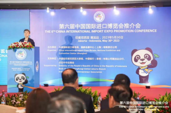 2023年5月30日,由中國駐印尼大使館、中國銀行(香港)有限公司雅加達分行、印尼中華總商會提供支持的第六屆中國國際進口博覽會印度尼西亞推介會在雅加達成功舉辦。中國駐印尼大使館公參石資明、國家會展中心(上海)總裁寧風、印尼中華總商會總主席張錦雄、中國銀行(香港)有限公司雅加達分行行長張朝陽出席并致辭,印度尼西亞工商各界100多名代表參加了這場推介會。金光集團APP產品及市場部總經理Lina Lim女士受邀出席,并發言分享了金光集團APP作為五屆進博“元老”的參展體驗和成效。