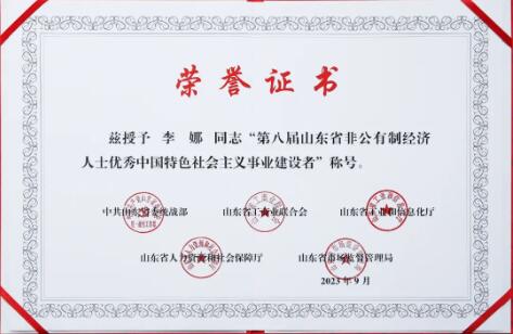 “省優秀建設者榮譽不僅是砥礪奮進的動力,更是一份沉甸甸的責任。”李娜表示,自己將以實際行動積極響應《第八屆山東省非公有制經濟人士優秀中國特色社會主義事業建設者倡議書》號召,堅持以習近平新時代中國特色社會主義思想為指導,在省委、省政府的堅強領導下,錨定“走在前、開新局”,堅定理想信念,堅持守法經營,堅持卓越追求,堅守社會責任,為加快新時代社會主義現代化強省建設作出新的更大貢獻!