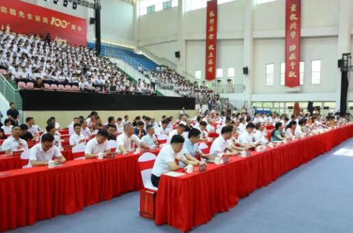 紀(jì)念活動在奕聰中學(xué)體育館舉行,與會領(lǐng)導(dǎo)、嘉賓、在校師生相聚一堂,緬懷思念、傳承遺志。