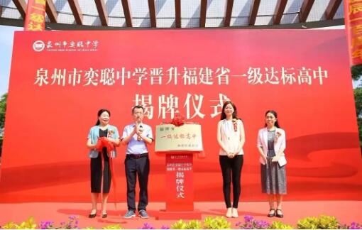 當(dāng)天還舉行奕聰中學(xué)晉級省“一級達(dá)標(biāo)高中”揭牌儀式。2023年4月,福建省教育廳確認(rèn)奕聰中學(xué)為福建省一級達(dá)標(biāo)高中,這標(biāo)志著學(xué)校正式邁入福建省優(yōu)質(zhì)高中行列。