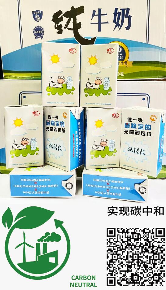 為響應(yīng)集團(tuán)“雙碳”戰(zhàn)略,APP(中國(guó))大紙事業(yè)部第一時(shí)間構(gòu)建并完善碳排放管理體系,截至目前,旗下金東、金海、寧波、金桂、山東博匯、江蘇博匯均已完成ISO14064認(rèn)證,碳排放管理能力大幅提升。并借碳達(dá)峰碳中和重大宣示三周年之際,在第六屆進(jìn)博會(huì)集中重磅推出全新碳中和系列產(chǎn)品,主要包括:“零碳無菌液體包裝紙板、零碳食品級(jí)涂布牛卡、零碳膠版印刷紙、零碳復(fù)印紙”。 零碳無菌液體包裝紙板 零碳無菌液體包裝紙板,具有良好的挺度、柔韌性,后加工性能優(yōu),穩(wěn)定的抗乳酸、抗雙氧水邊滲性能,能夠輕松滿足無菌液體食品包裝紙的質(zhì)量要求。 作為最高級(jí)別的食品包裝用紙板,它可廣泛應(yīng)用于牛奶、酸奶、果汁制品等液體包裝領(lǐng)域。