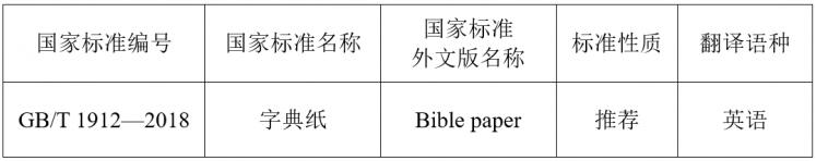近日,國家市場監督管理總局(國家標準化管理委員會)批準發布398項國家標準外文版,涉及多個領域,其中,包括1項造紙領域國家標準外文版——《字典紙》,具體信息如下: