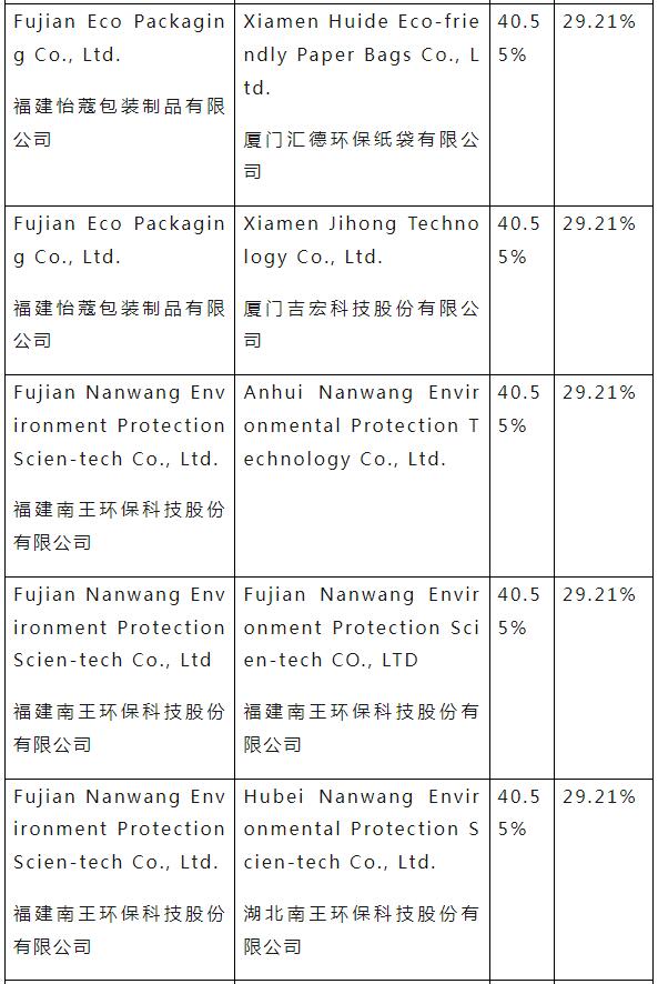 2023年6月21日,美國商務部宣布對進口自中國大陸和印度的紙購物袋發起反傾銷和反補貼調查,對進口自柬埔寨、哥倫比亞、馬來西亞、葡萄牙、土耳其和越南6國及中國臺灣地區的紙購物袋發起反傾銷調查。