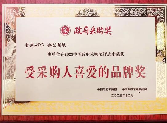 中國政府采購獎是面向全國政府采購領域評選,專家評審委員會參與評審,具有權威性、示范性、導向性的獎項,已成為政府采購、市場采購的“白皮書”。此次APP辦公用紙獲此榮譽,不僅體現了政企單位及市場對APP中國的認可和褒獎,更彰顯了APP中國產品的先進性,并將為集團發展注入強大動力。