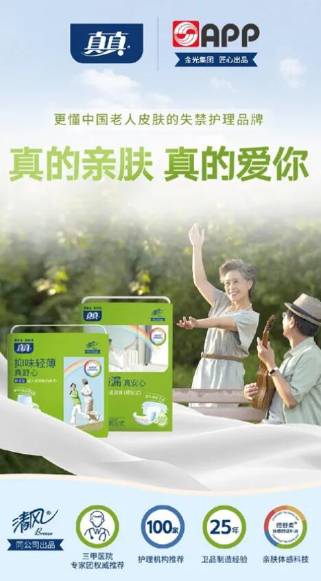 真真,更懂中國(guó)老人皮膚的失禁護(hù)理品牌。集結(jié)集團(tuán)25年衛(wèi)生用品制造經(jīng)驗(yàn),三甲醫(yī)院專業(yè)醫(yī)生護(hù)士團(tuán),專研老人脆弱肌,匠心打造五維“親膚護(hù)理級(jí)”產(chǎn)品,解決失禁問題的同時(shí),更細(xì)致照護(hù)中國(guó)老人脆弱的肌膚。 真真親膚型成人拉拉褲,深入挖掘用戶的核心需求,解決了具有中輕度活力老人的痛點(diǎn),讓他們重新開啟精彩的退休生活,讓人生下半年依然能發(fā)光發(fā)熱,樂享無(wú)憂。