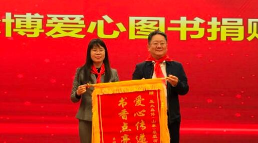 為感謝公司對學(xué)校教育事業(yè)的支持,李力主任代表學(xué)校向公司贈送“愛心傳遞希望,書香點亮夢想”錦旗。