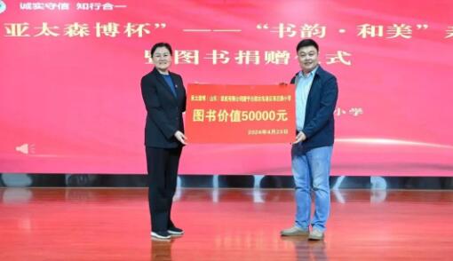 同日下午,公司向日照市棗莊路小學(xué)捐贈價值5萬元圖書。